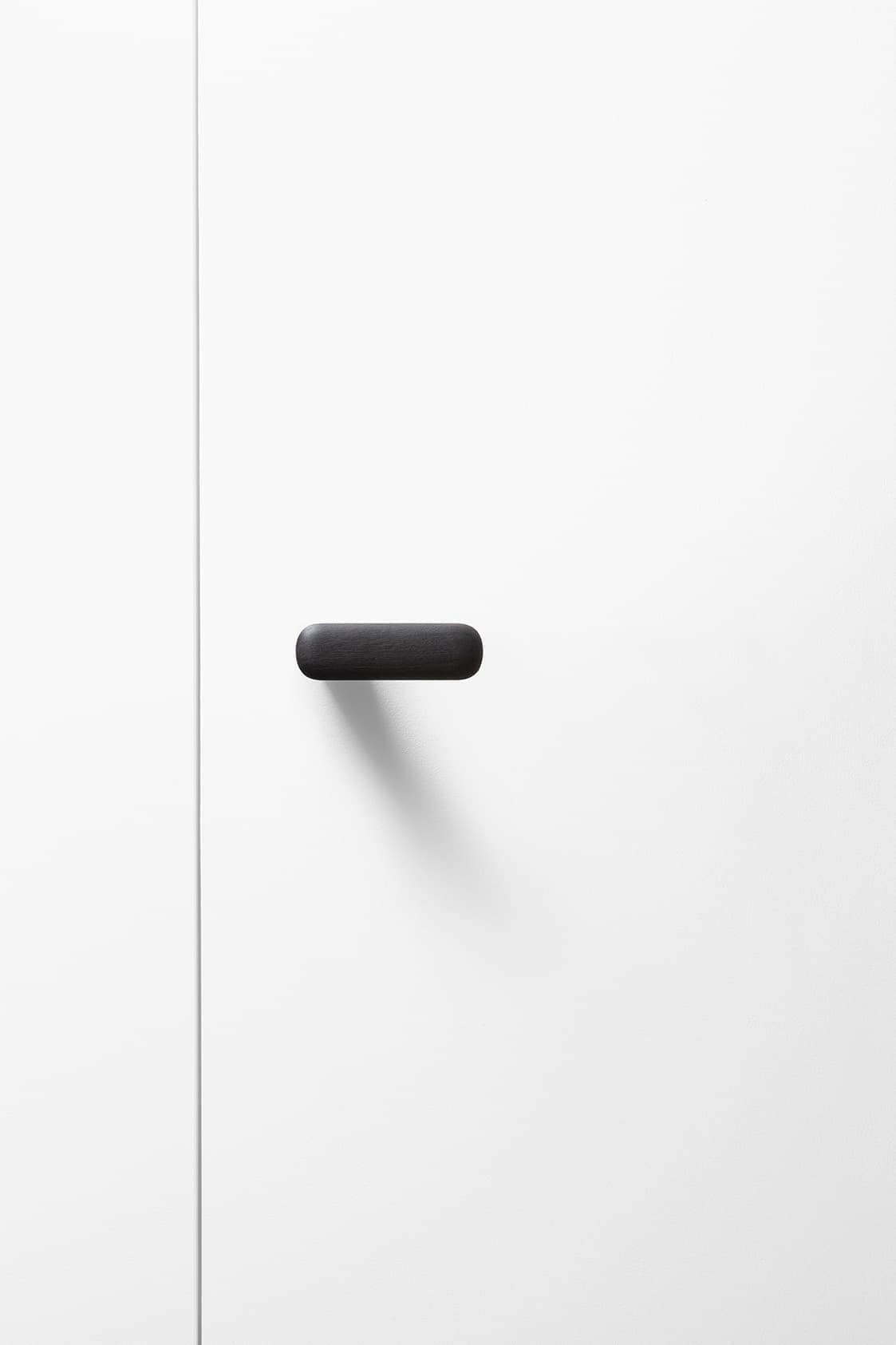 The lever handles, which are small but full of richness and are frequently used in various architectural spaces in the same vocabulary as the pull handles and pull plates, were made by machining from solid wood, which had never been done before. The precision of the machining and the ingenuity of the wood treatment have resulted in precision, strength and beauty of grain. A metal ring the same size as the handle diameter is used for the door attachment, eliminating friction with the door and providing a minimalist fit. Size S is recommended for installation in compact areas such as sanitary rooms and storage doors. The rich wood of the M size with a longer handle and the handcrafted details of the smooth metal joints are unique to aru. Recommended for children's rooms and other private door handles.